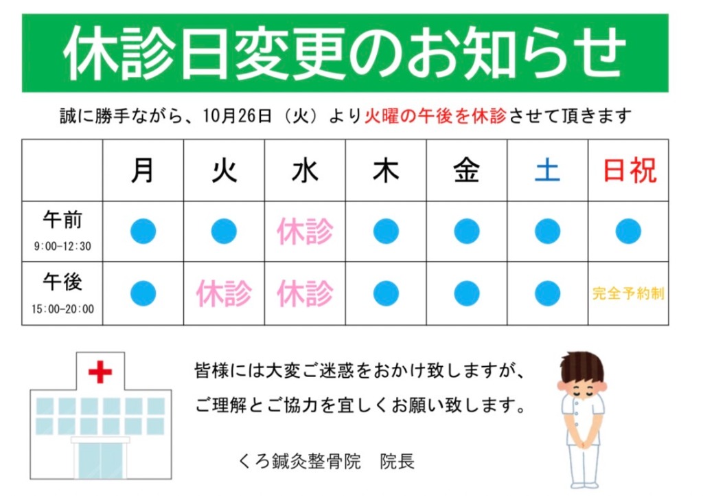 【休診日変更のお知らせ】