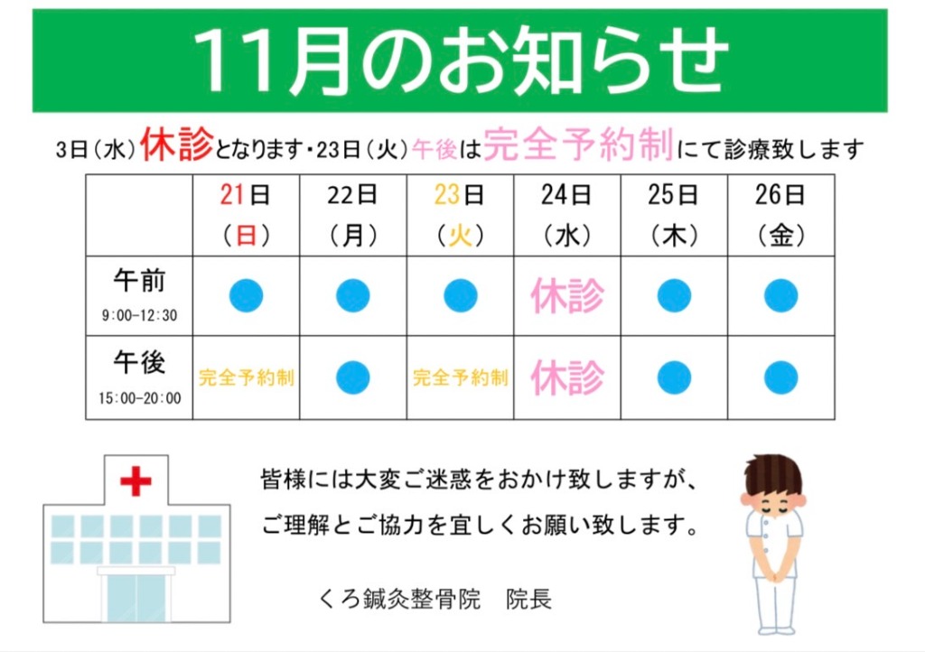 【11月のお知らせ】